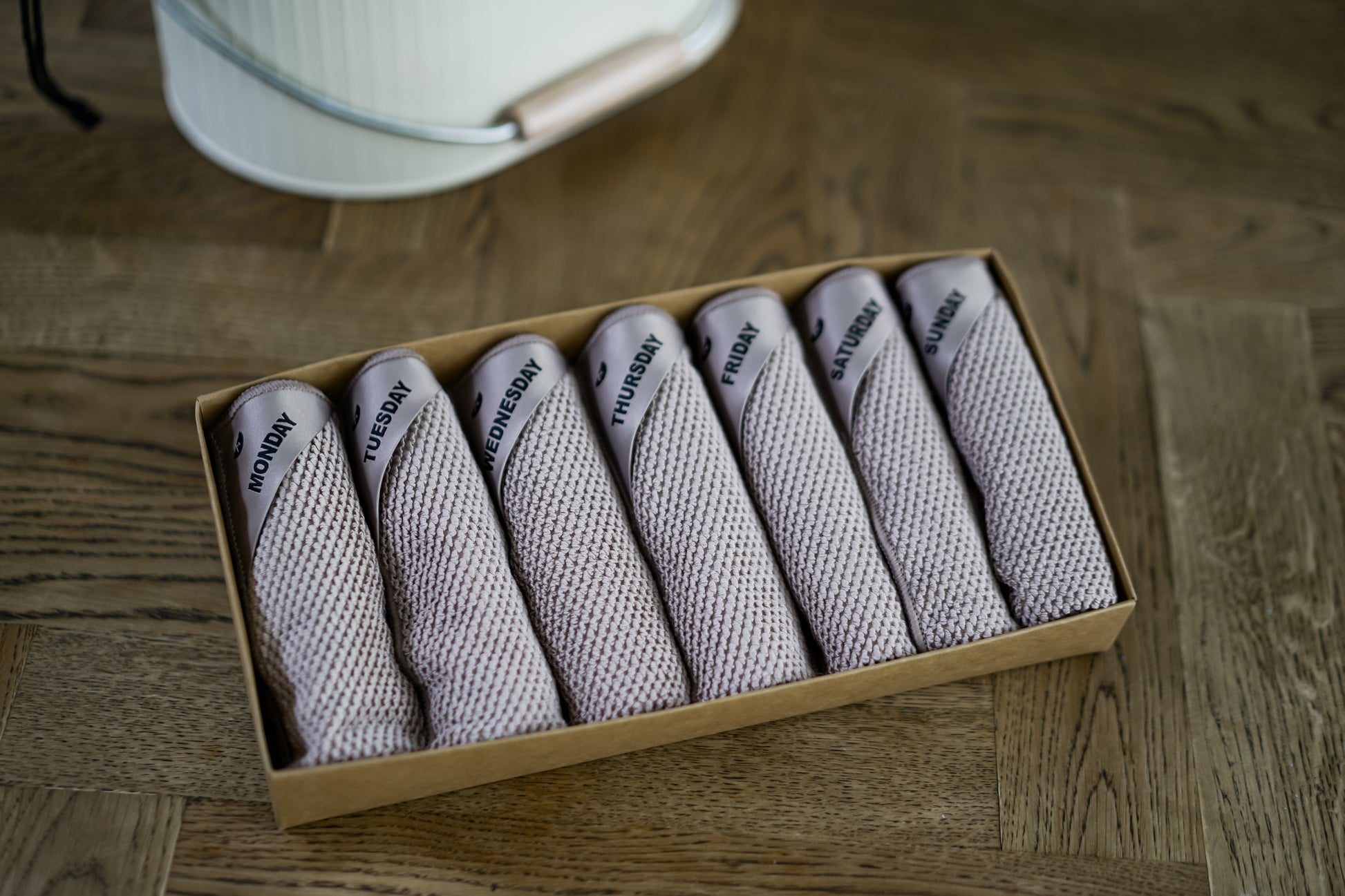 - Eén vaatdoek per dag (ma, di, wo, do, vr, za & zondag)