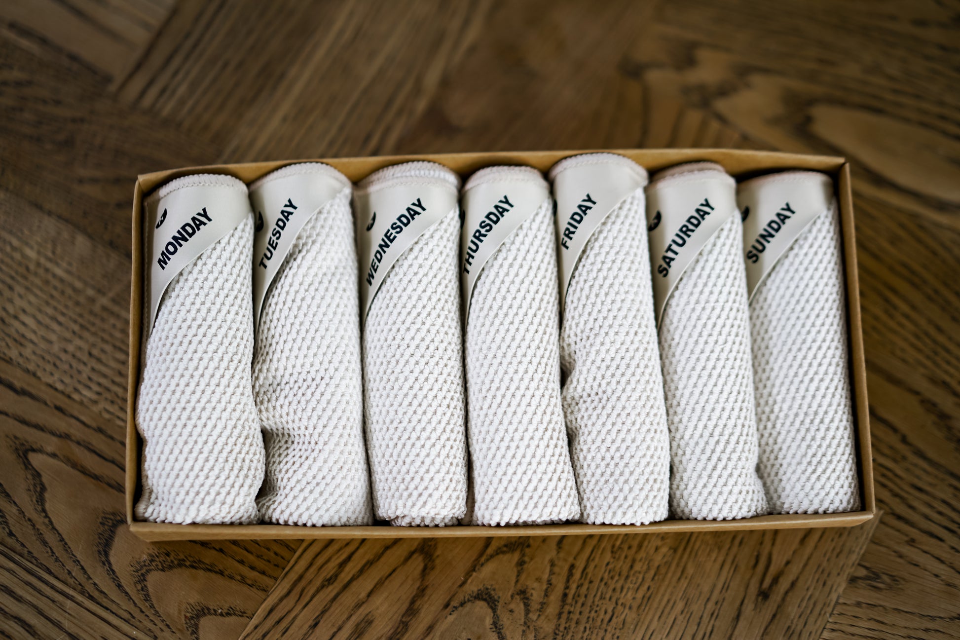 - Aan elk doekje zit een label met één dag van de week