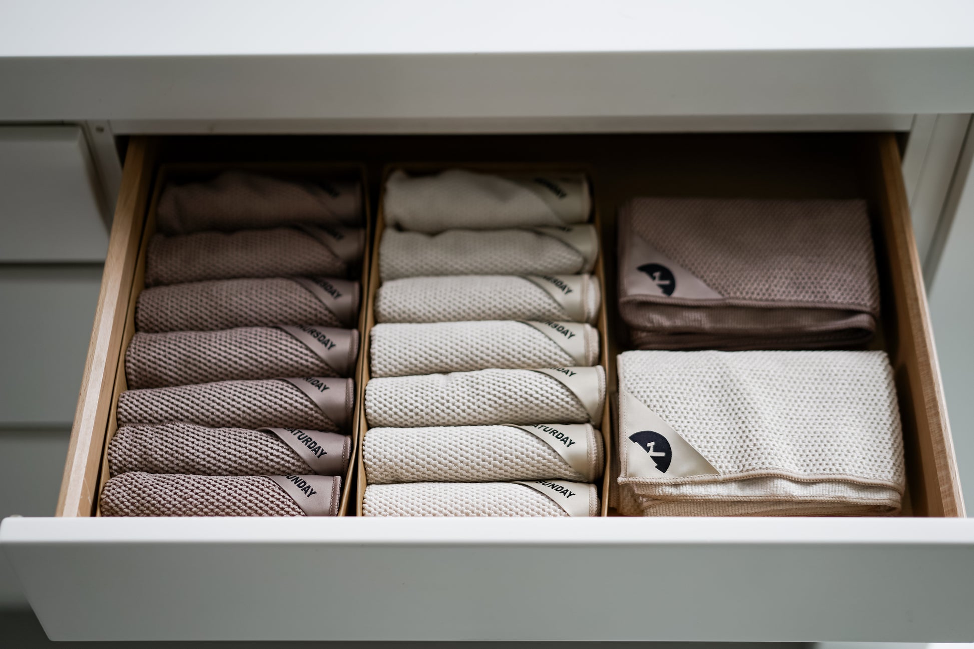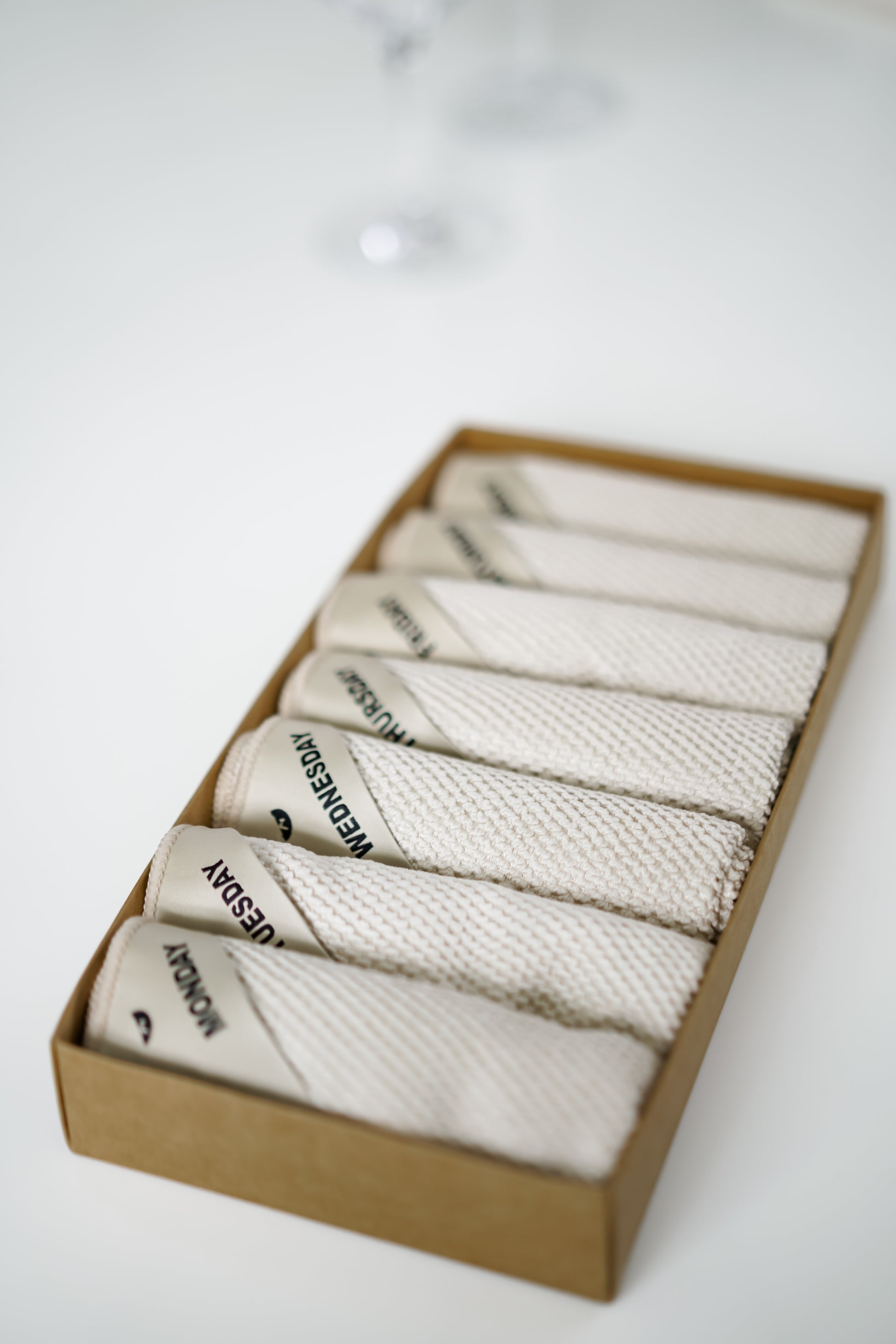 - Eén vaatdoek per dag (ma, di, wo, do, vr, za & zondag)